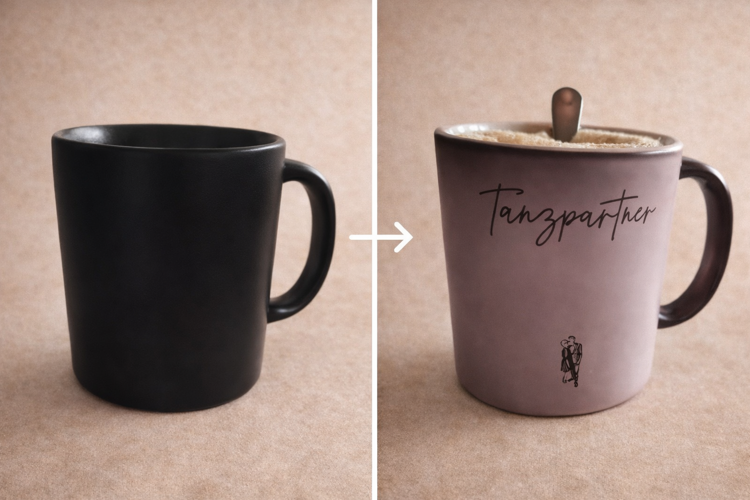 Zaubertasse - im kalten Zustand schwarz, wenn man etwas heißes hineinfällt, erscheint die Grafik auf weißem Hintergrund